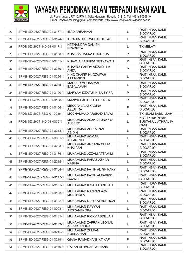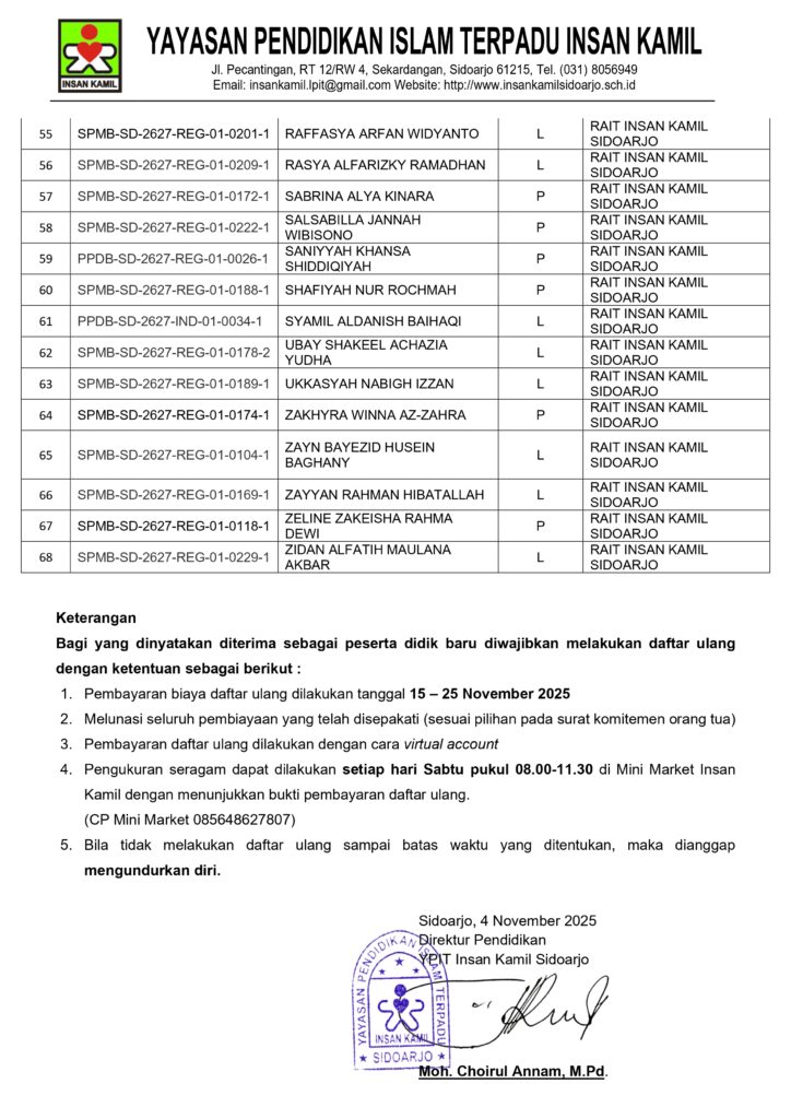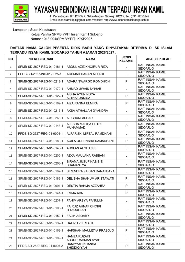 Pengumuman SPMB SDIT Insan Kamil Sidoarjo