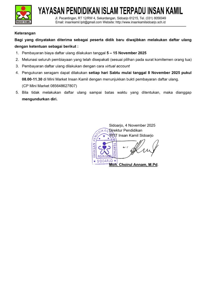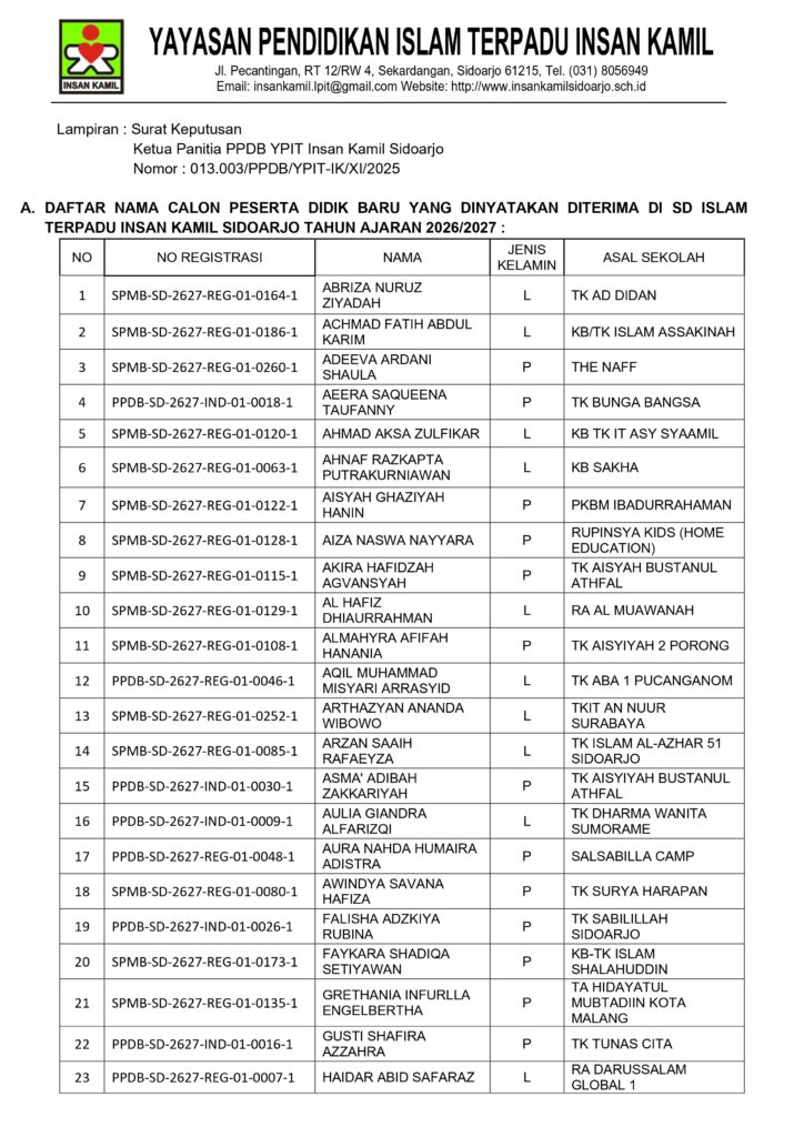 Pengumuman SPMB SDIT Insan Kamil Sidoarjo